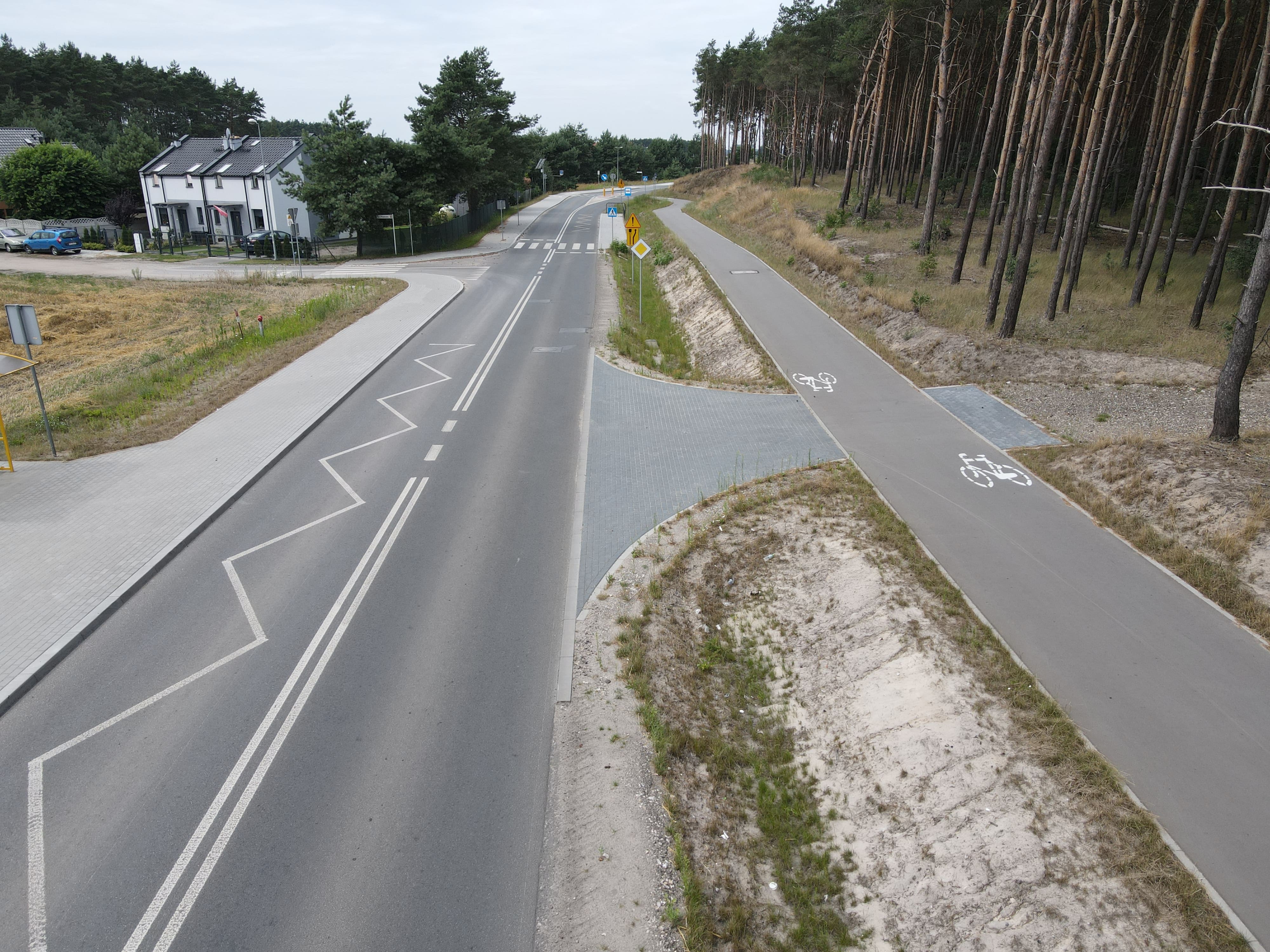 Prace projektowe branży drogowej obejmowały: budowę ścieżki rowerowej wzdłuż istniejących dróg powiatowych nr 2465P i 2469P oraz przebudowę drogi powiatowej nr 2469P (ulica Powstańców Wielkopolskich) na odcinku od skrzyżowania z drogą powiatową 2465P (ulica Główna) do skrzyżowania z drogą wewnętrzną gminną (ulica Krańcowa).
