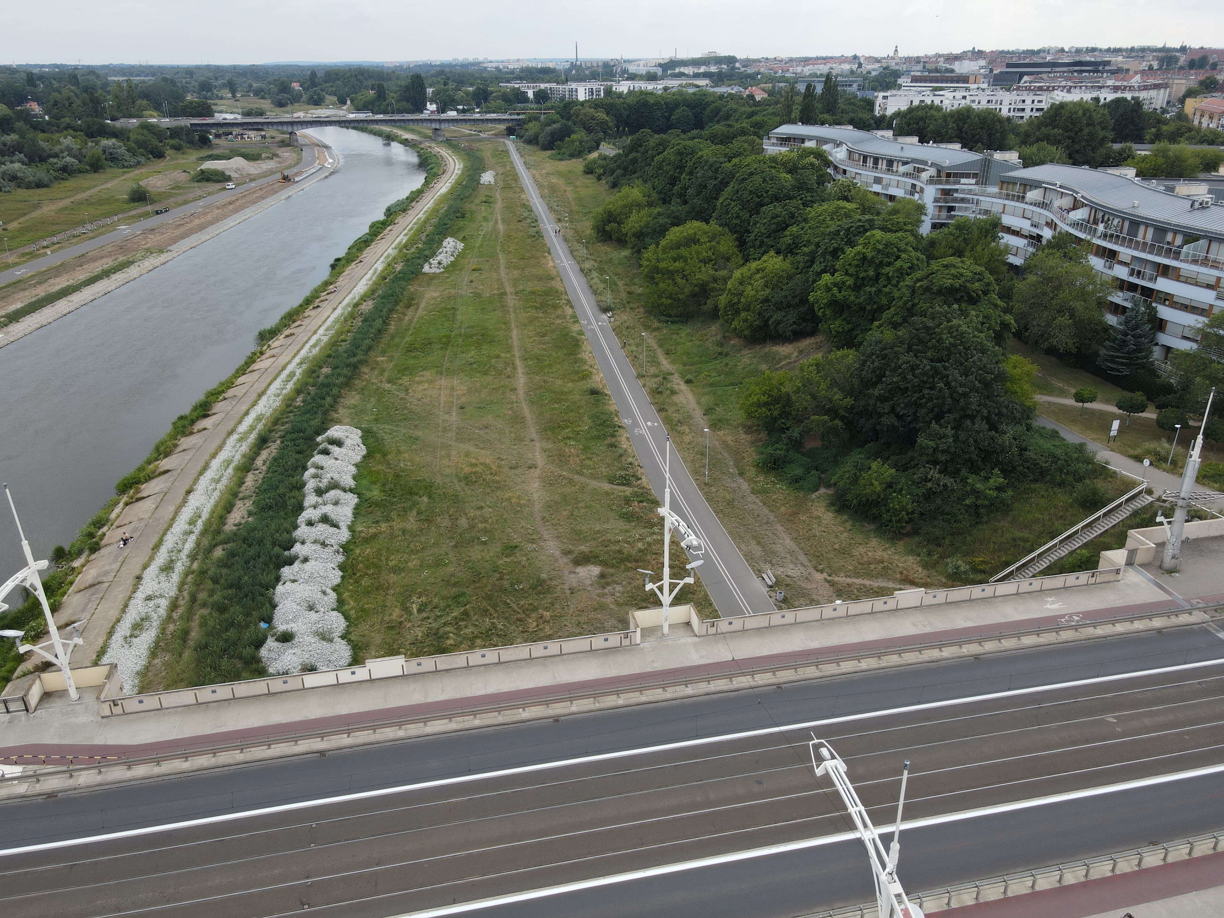 Prace projektowe branży drogowej obejmowały: budowę drogi pieszo-rowerowej po obu stronach rzeki Warty od Mostu Przemysła I na południu do Mostu Lecha na północy, wraz z budową infrastruktury towarzyszącej (oświetlenie, stojaki rowerowe, elementy małej architektury, system monitoringu miejskiego i oznakowanie).
